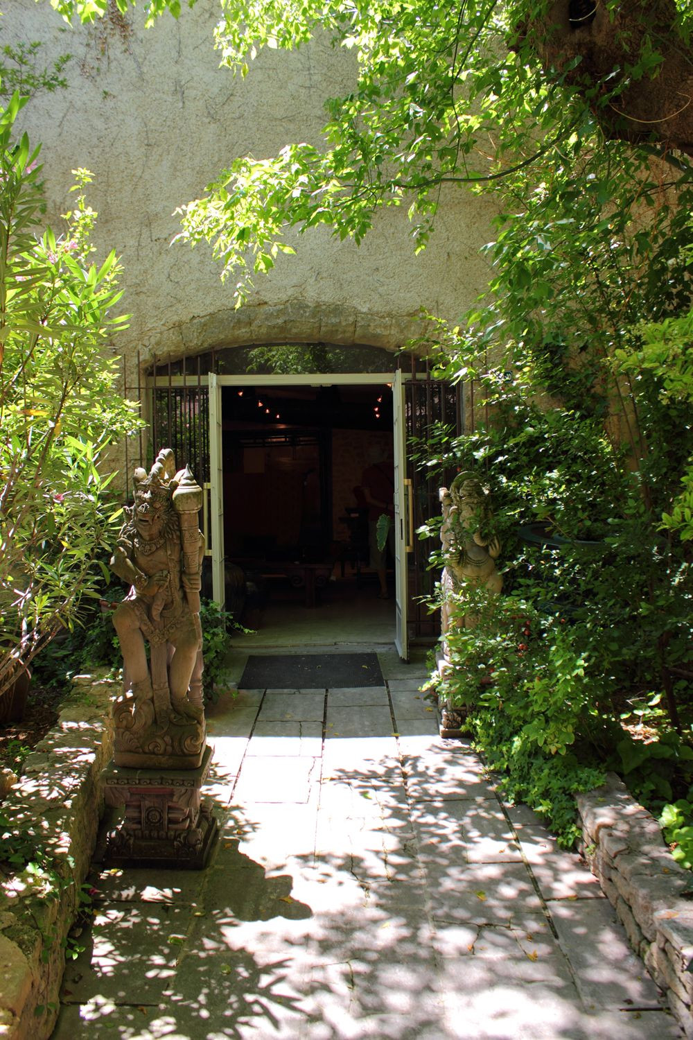 木々に囲まれた建物の入口。 一歩足を踏み入れる前から、 守られているような感覚があります。